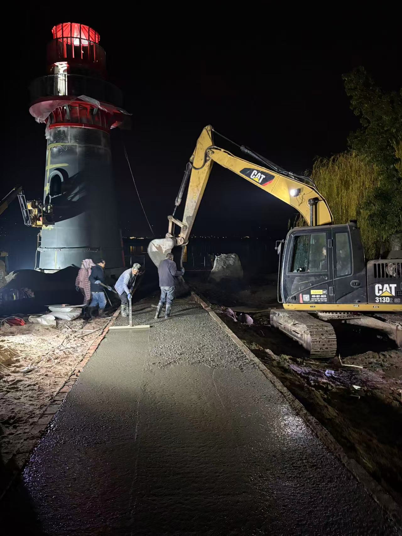 ▲夜间施工现场