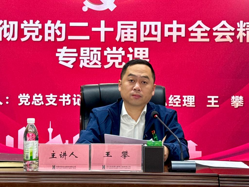 随后,公司党总支书记、董事长、总经理王攀以《深学笃行党的二十届四中全会精神,勇担使命绘就公司“十五五”发展新蓝图》为题,讲授专题党课。王攀同志从“筑牢思想根基、狠抓贯彻落实、锚定发展方向”三个维度,系统交流分享了党的二十届四中全会精神,结合公司发展实际,提出实践要求。他指出,全会审议通过的《中共中央关于制定国民经济和社会发展第十五个五年规划的建议》,为建筑行业“智能化、绿色化、融合化”转型提供了根本遵循。全体党员要通过“强化系统学习、强化对标对表、强化作风建设”,将全会精神转化为冲刺年度目标、破解发展难题、谋划“十五五”规划的实际行动。