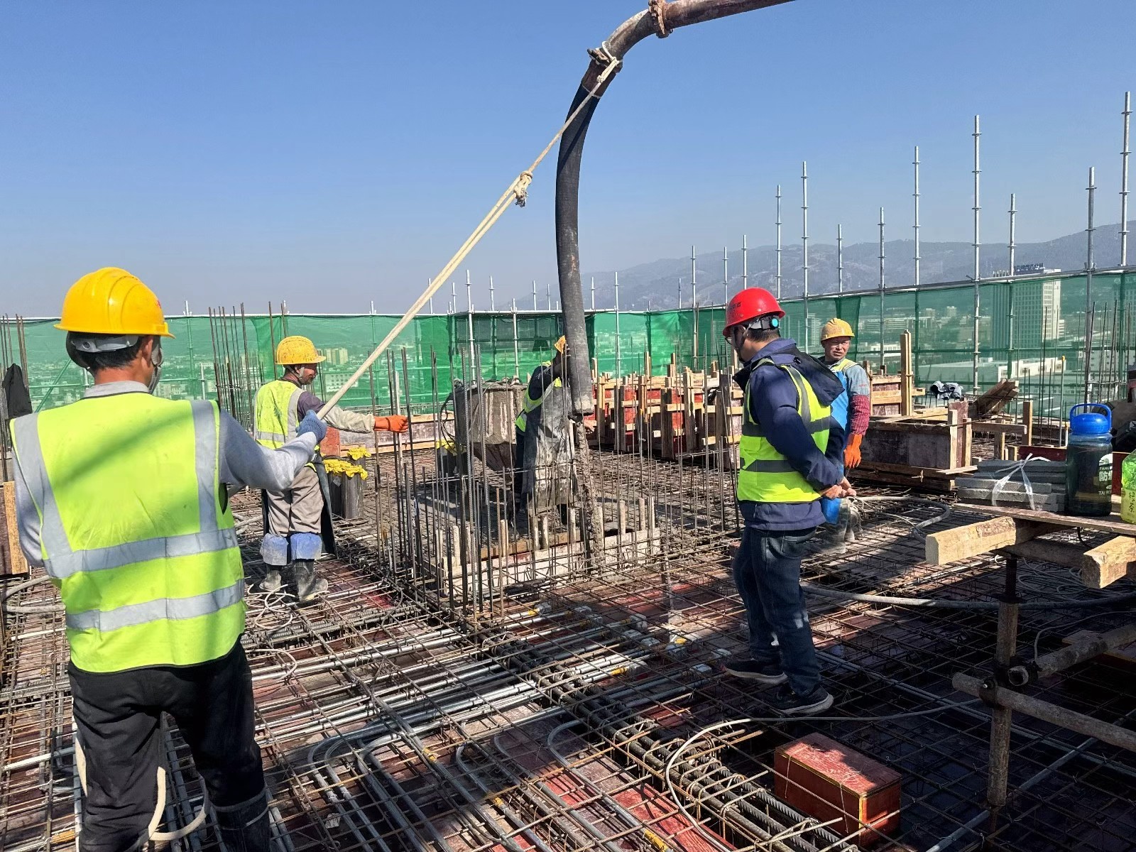 自开工以来,项目部始终秉持精细化管理理念,严把质量关、守牢安全线,大力弘扬“铁军精神”,全体参建人员迎难而上、昼夜奋战,在不足一年时间内高效完成结构封顶任务,充分展现了过硬的攻坚能力和专业的管理水准。截至目前,项目已累计获得两项省级QC成果,彰显出团队在技术创新与质量管控方面的扎实功底与显著成效。