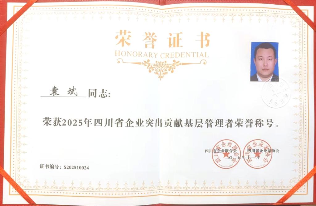 11月27日,川渝和谐企业基层组织建设管理创新经验交流大会在成都隆重召开。会上,四川省企业联合会、四川省企业家协会正式授予公司袁斌、李忠强两名基层员工“2025年四川省企业突出贡献基层管理者”荣誉称号。