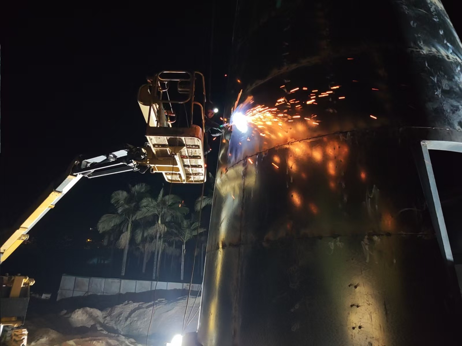 ▲夜间施工现场