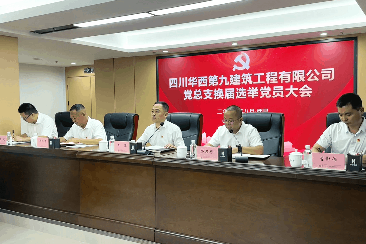 8月6日下午,四川华西第九建筑工程有限公司党总支换届选举党员大会隆重召开,公司53名党员参加会议。此次大会是在公司“十四五”发展即将胜利收官,阔步迈向“十五五”发展新阶段的关键时期召开的一次重要会议。会议顺利完成各项议程,成功选举产生新一届党总支委员会,并明确了公司未来三年发展的宏伟蓝图。会议由公司党总支委员、董事、工会主席、财务总监万左根主持。