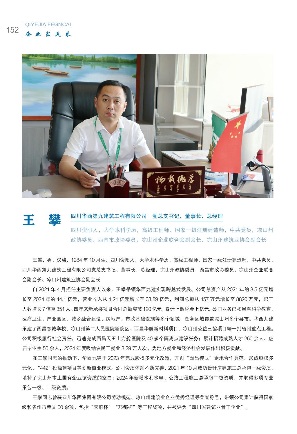 这一荣誉,是对其履职以来务实担当坚守国企使命的认可是对公司扎根凉山、服务区域经济社会发展成效的肯定王攀表示,未来将始终坚持党的全面领导,以更加奋发有为的精神状态履职尽责,增强大局观念,带领企业深耕凉山,更好服务四川经济社会高质量发展。
